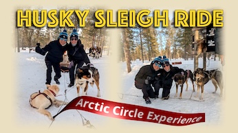 Experience the magic of Saariselkä, Finland! Visit a traditional husky farm, meet the energetic dogs, and ride through snowy Arctic landscapes on a thrilling husky-pulled sleigh. A true Lapland winter adventure!