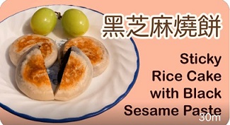 黑芝麻燒餅 Black sesame paste rice cake - a classic snack & Hong Kong street food. This simple and delicious recipe is easy to make at home. Most people like to use red bean paste or peanut butter, but I like black sesame paste because it is healthy and not too sweet.