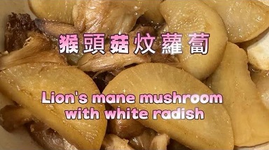 猴頭菇炆蘿蔔 素食網友 Sandra 好介绍 Stew Lions mane mushroom with white radish 簡單食譜新鲜無硫磺猴頭菇有益腦部健康失智証 easy recipe