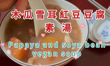 [木瓜雪耳红豆豆腐素湯] 高蛋白質素湯 High protein Papaya and soya bean vegan soup 清潤香甜補血 easy recipe 容易好味