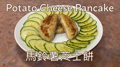 Potato Cheese Pancakes [馬鈴薯芝士餅] These potato pancakes are made from mashed potatoes and cheese. They are soft from the inside and crispy golden brown from the outside. Perfect for snacking!
