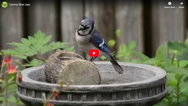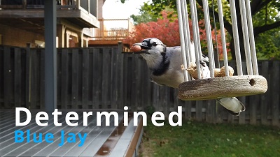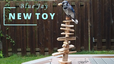 New Toy for Blue Jay - Christmas is coming. The Blue jays have fun playing with their new toy. Soon other birds will join in the fun.