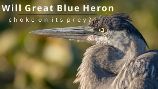 Will Great Blue Heron choke on its prey? It is amazing to watch the ‘bill stab’ action of the Great Blue Heron in catching its prey. Its attempts to swallow a large prey bring surprise to bird watching.