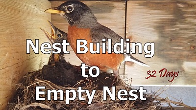 Nest Building to Empty Nest in 32 days - A baby is born! View how it spends its first month in the nest. This 10 minutes video captures the incredible 32 days from Nest Building to Empty Nest with a Big Surprise at the end!