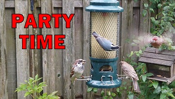 Party Time! Birds and friends enjoy feast party in the backyard before another winter.